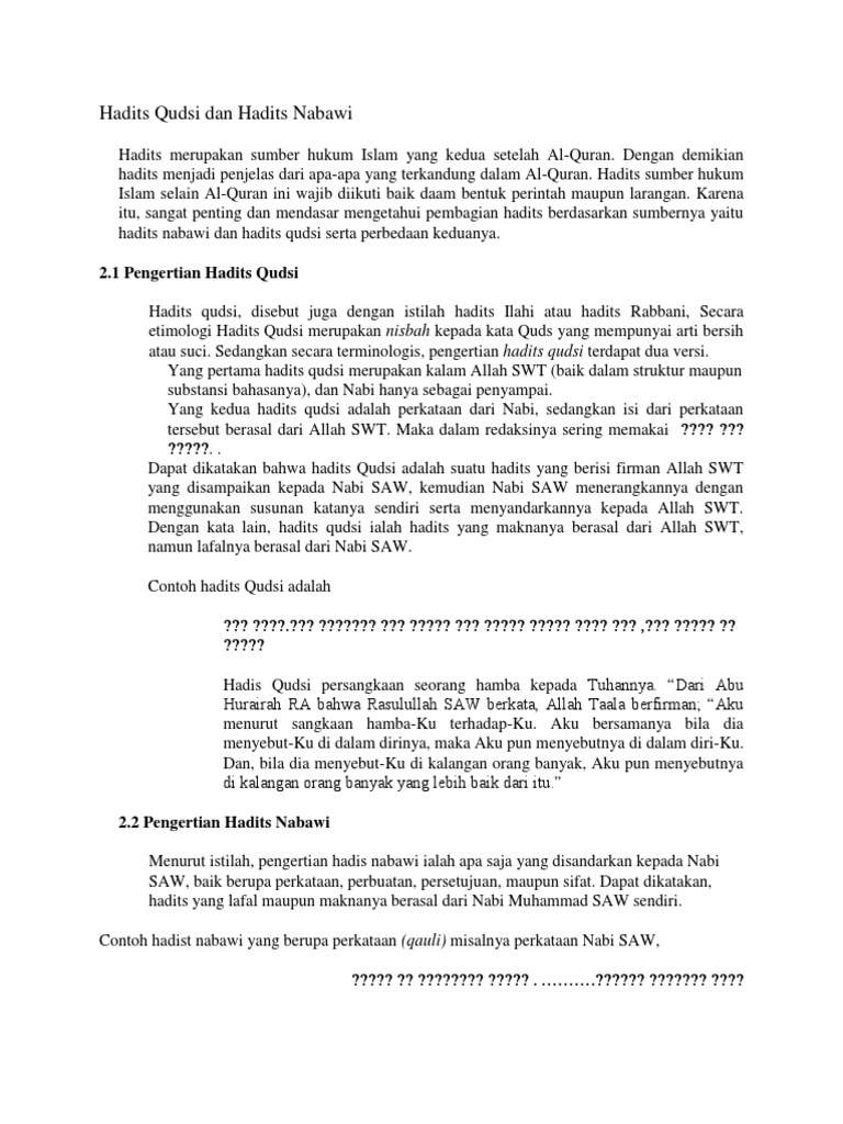 Maksud hadis qudsi dan hadis nabawi. Al-Quran redaksi dan maknanya dari Allah. 20 minutes ago by. HADIS QUDSI DAN HADIS NABAWI DRAFT.