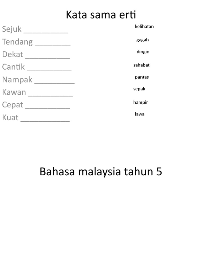 Pastikan perkataan dieja dengan betul. LATIHAN PERKATAAN SAMA ERTI SINONIM DRAFT. Bilang cakap kata sebut.