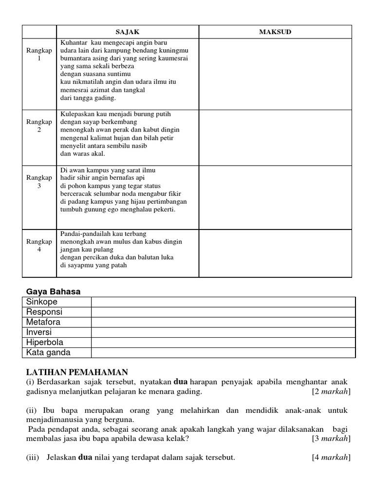 WATAK PERWATAKAN Ibu Aiman Ibu kepada tiga orang anak iaitu Aiman Aqil Fadilah Fatnin dan Azilah Atiqah. Maksud Tema Persoalan Gaya Bahasa Nilai Murni Pengajaran Sajak Erti Hidup Bererti K2. Komsas BM Bahasa Melayu Tingkatan 5 SPMKomponen sastera dan novel BM bahasa melayu.
